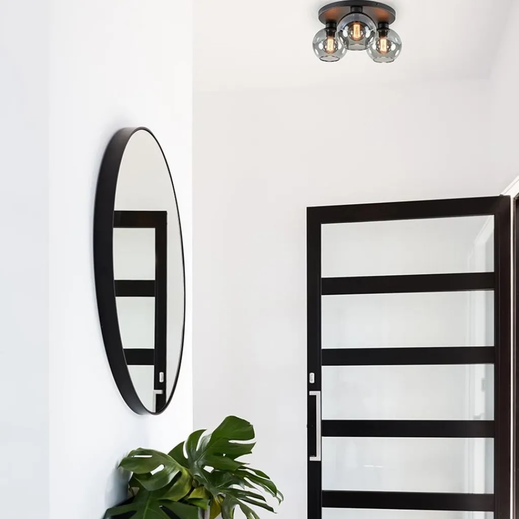 Straluma Plafondlamp 3L zwart bolglas smoke> Halverlichting|Plafondlampen