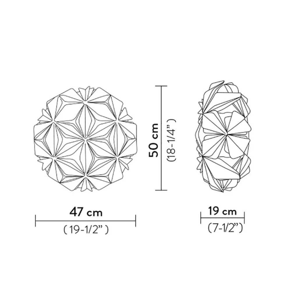 Geïnspireerd op de ‘flower of life’, maakt dat deze plafondlamp een uniek ontwerp heeft waar de bloem mooi is terug te vinden. De design lamp bestaat uit diverse ‘blaadjes’ die samen het geheel vormen. De ronde lamp is zowel als plafond- en wandlamp te gebruiken. De kap wordt gemakkelijk op de bevestiging geplaatst met magneetjes. Plafondlamp La Vie is verkrijgbaar in divere kleuren en wordt geleverd zonder lichtbron (2x E27)