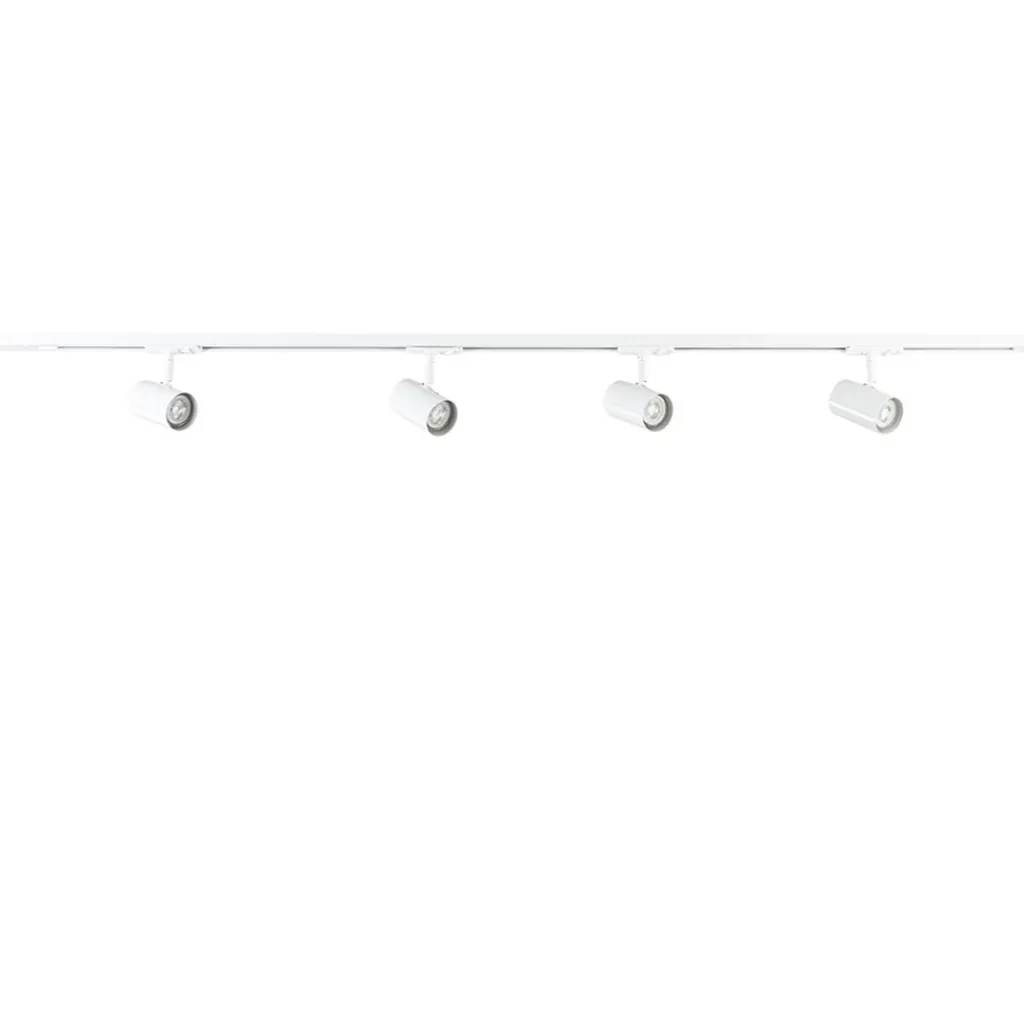 Ideaal om een ruimte extra uit te lichten of meer sfeer aan te brengen. Dit 1-fase railsysteem wordt geleverd inclusief 4 spots, beide uitgevoerd in het wit. De rail heeft een lengte van 150 cm waar de spots gemakkelijk op kunnen worden verdeeld. Druk de spot in de rail en zet hem vast door de knop om te zetten. De spots kunnen verder nog draaien en kantelen. Bepaal dus zelf hoe u het licht wilt verspreiden. Het railsysteem heeft 1-fase, dit houdt in dat alle lampen tegelijk zullen worden in- en uitgeschakeld. Handig voor in een lange hal of slaapkamer, maar ook in de keuken of woonkamer past dit systeem perfect. De smalle rail en de cilindervormige spots geven een strak en modern geheel aan de ruimte. Het witte railsysteem is dimbaar met een externe dimmer.