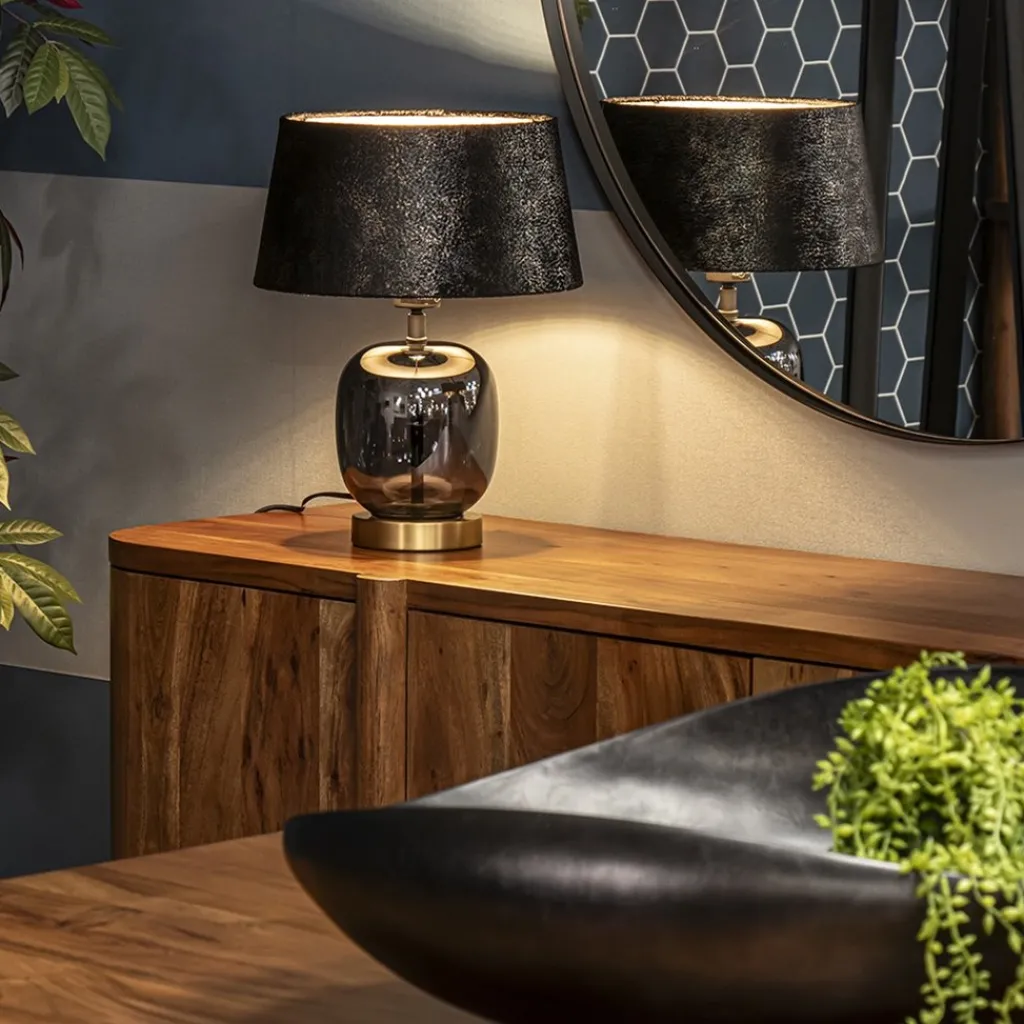 Straluma Chique tafellamp zwart/goud met kap> Schemerlampen|Woonkamerlampen