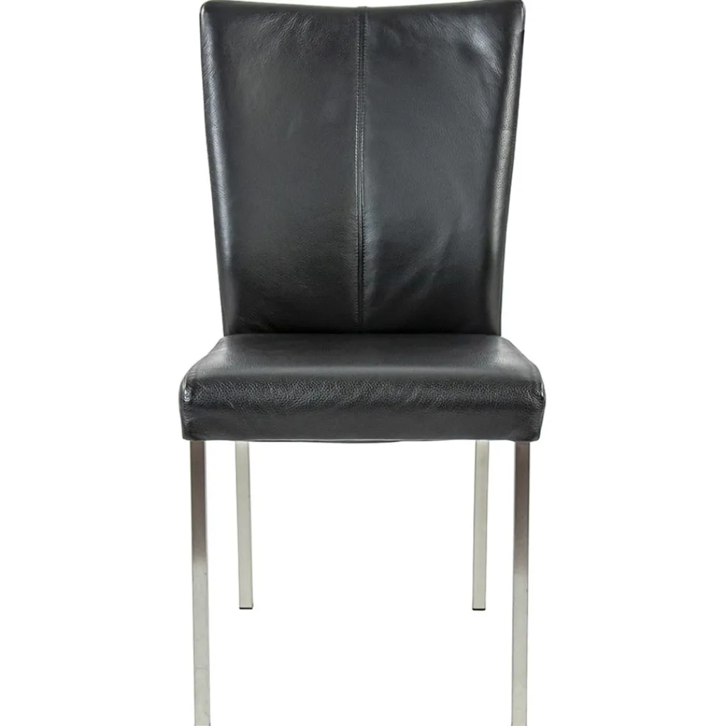 Straluma Eetkamerstoel zwart lederen zitting met RVS poten> Eetkamerstoelen