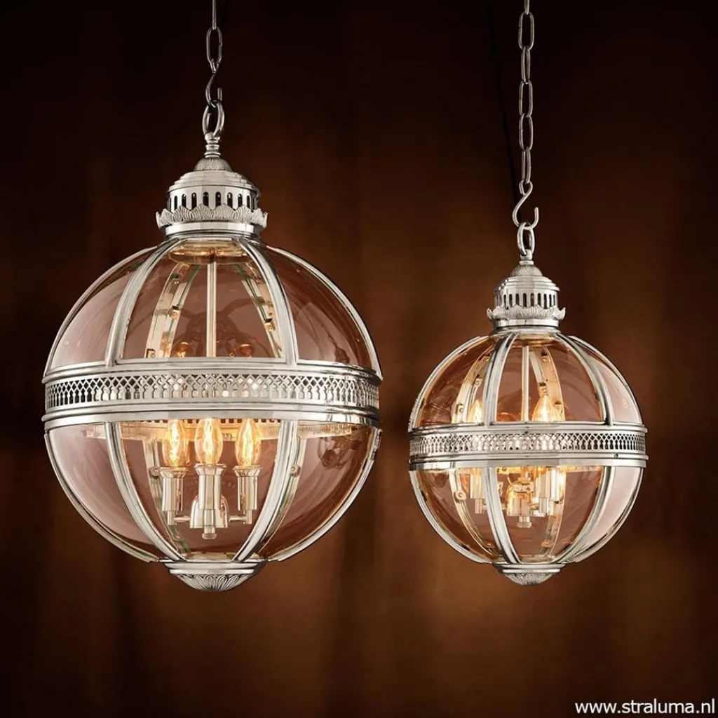 Deze luxe lantaarn is uitzonderlijk in zijn soort. Het ontwerp en de afwerking doen denken aan de sfeer van nautica, zoals patrijspoorten en luxe jachten. Het is een echte blikvanger binnen uw kamer. De hanglamp is in meerdere maten leverbaar, zoals doorsnede 30 en 60 cm. Ook verkrijgbaar in het brons, zie artikel 05100066.