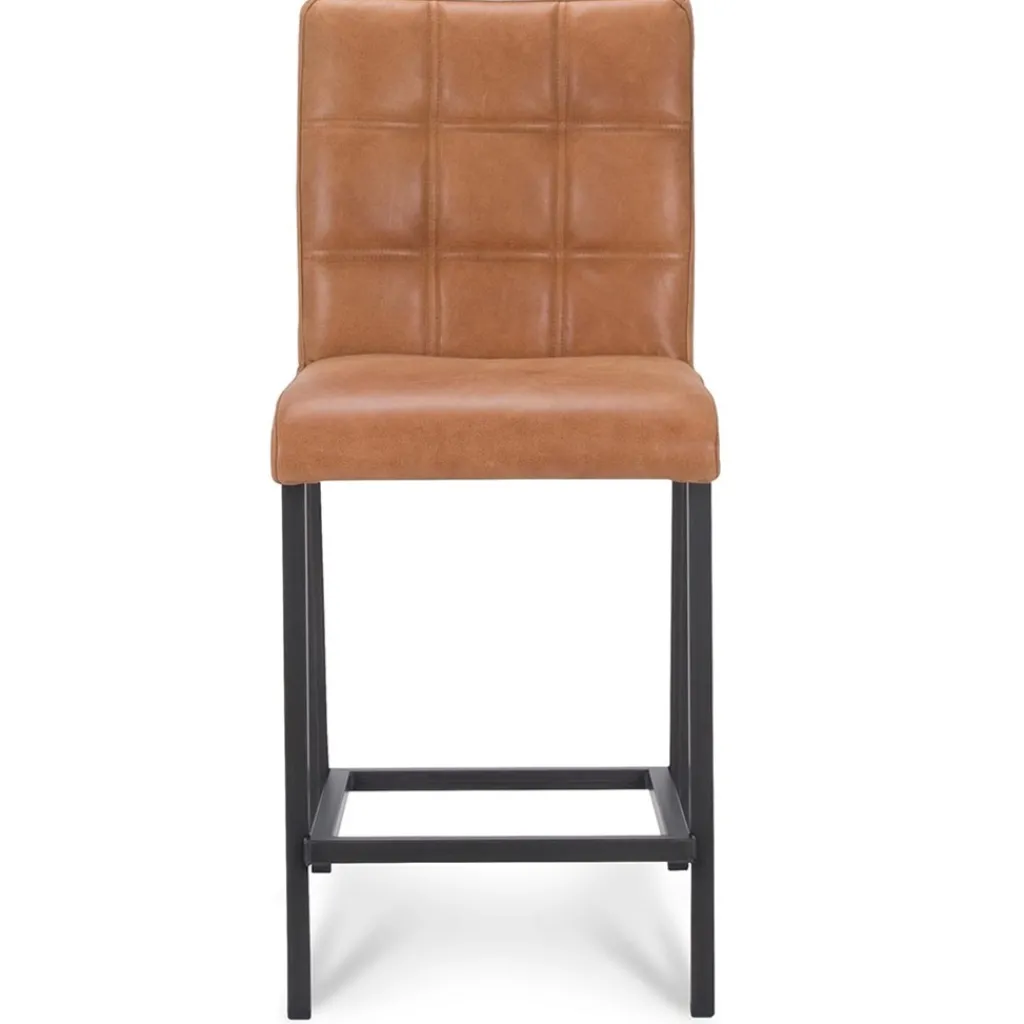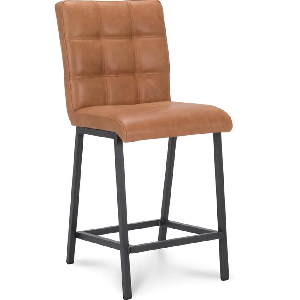 Een stoere barkruk met een fijne zitting. Perfect geschikt voor een industriële of landelijke setting. De barstoel heeft een hoog zitcomfort en heeft in de zwart metalen poten een extra voetensteun voor extra steun. De barstoel heeft een zachte lederen zitting die in de rug is afgewerkt met een stiksel. Het fijne aan de rugleuning is dat deze wat hoger is en zo veel steun geeft waardoor een avondje borrelen geen probleem is.