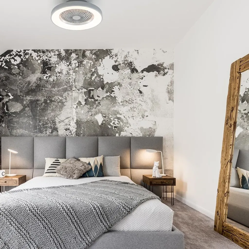Een moderne plafondventilator met een strak design. Deze ronde ventilator bestaat uit twee delen, de buitenste ring is voorzien van geïntegreerd LED en de binnenste ring behuisd de ventilator. Het mooie is ook dat de ventilator en de lamp zijn te bedienen via de meegeleverde afstandsbediening, maar ook gemakkelijk met uw smartphone. Middels een app en bluetooth linkt u de ventilator gemakkelijk met uw smartphone en stelt u snel de gewenste snelheid van de ventilator in of dimt u de verlichting. De LED verlichting is in te stellen qua kleur en intensiteit, ideaal voor in de woonkamer of slaapkamer. De moderne plafondventilator met lamp heeft een zomer en een winter stand zodat u deze het hele jaar door kunt gebruiken.
