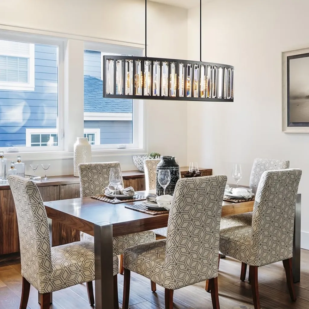 Elegant en modern in één, dat is de beste omschrijving van deze mooie hanglamp. De ovale hanglamp past mooi boven een eettafel. Er is ruimte voor maar liefst drie lichtbronnen waarmee de lamp mooi verlicht wordt. Het mat zwarte frame van deze ovale hanglamp in combinatie met de hangende kristallen, geeft de lamp een zeer stijlvolle en luxe uitstraling. Het glas is facet geslepen wat bijdraagt aan het luxe gevoel.