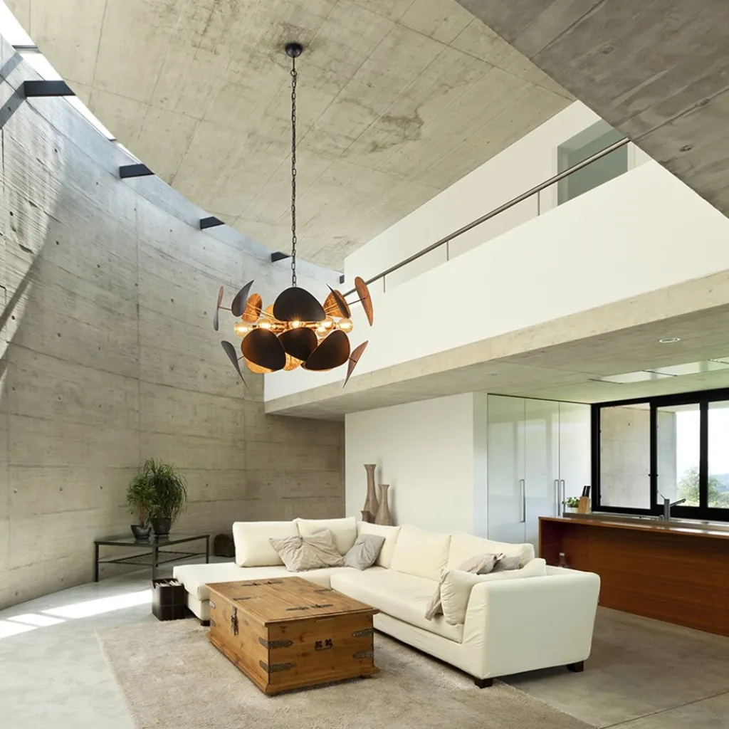 Futuristisch van design en elegant van uitvoering. Deze robuuste hanglamp is een ware eyecatcher in het interieur. De lamp is door z’n hoogte van 230 cm in diverse ruimtes toe te passen, van de eetkamer tot de hal of vide. De ovale hanglamp is volledig gemaakt van metaal en uitgevoerd in het textured black met ambachtelijk brons. Dit geeft de lamp een stoere robuuste uitstraling die mooi matcht in een luxe, chic of industrieel interieur. De hanglamp is in hoogte te verstellen door er schakels tussenuit te halen. De kap is van binnen voorzien van 8 E27 fittingen en een GU10 spot aan de onderzijde van de kap. Deze kunt u gemakkelijk bedienen met de drukknop op het armatuur. De robuuste hangllamp wordt geleverd zonder lichtbronnen en is dimbaar middels een externe dimmer (exclusief).