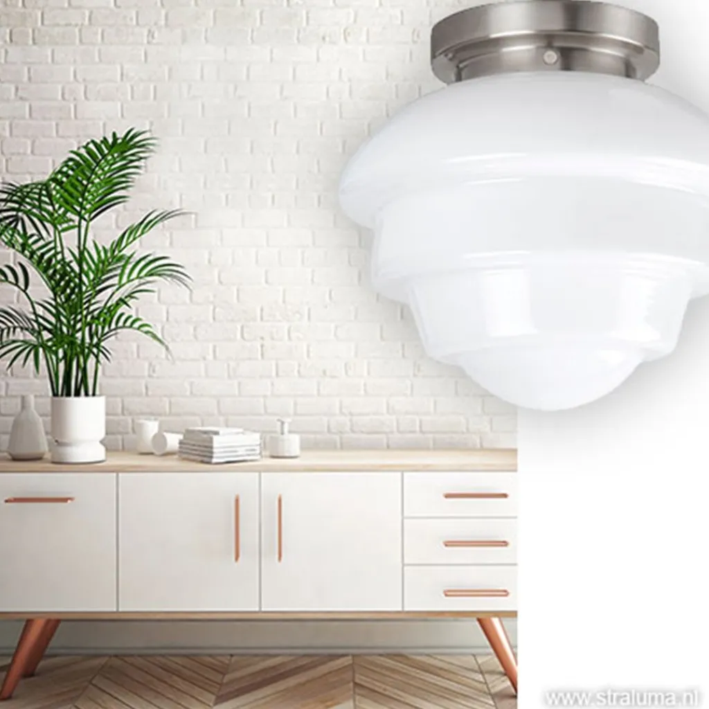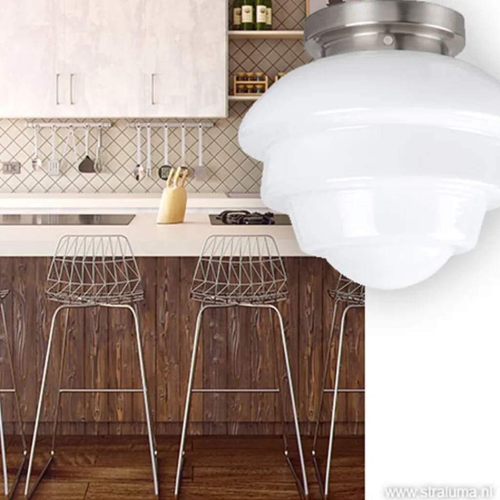 Straluma Plafondl. nikkel wit glas, keuken-hal> Plafonnières|Woonkamerlampen