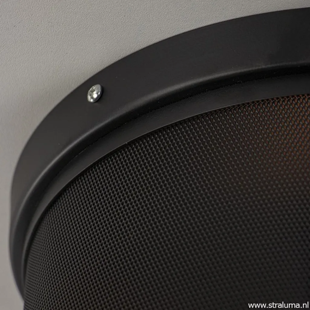 Modern met een industriële twist. De mat zwarte plafondlamp is volledig gemaakt van metaal en krijgt een stoer uiterlijk door het gaas dat is gebruikt. Dit zorgt er ook direct voor dat er een sfeervolle verlichting ontstaat en er niet direct in de lichtbron kan worden gekeken. De zwarte plafondlamp past door z’n kleine formaat mooi in een ruimte als de hal, overloop of zelfs het toilet. Waar de lamp ook hangt, er komt een industrieel tintje aan de ruimte.