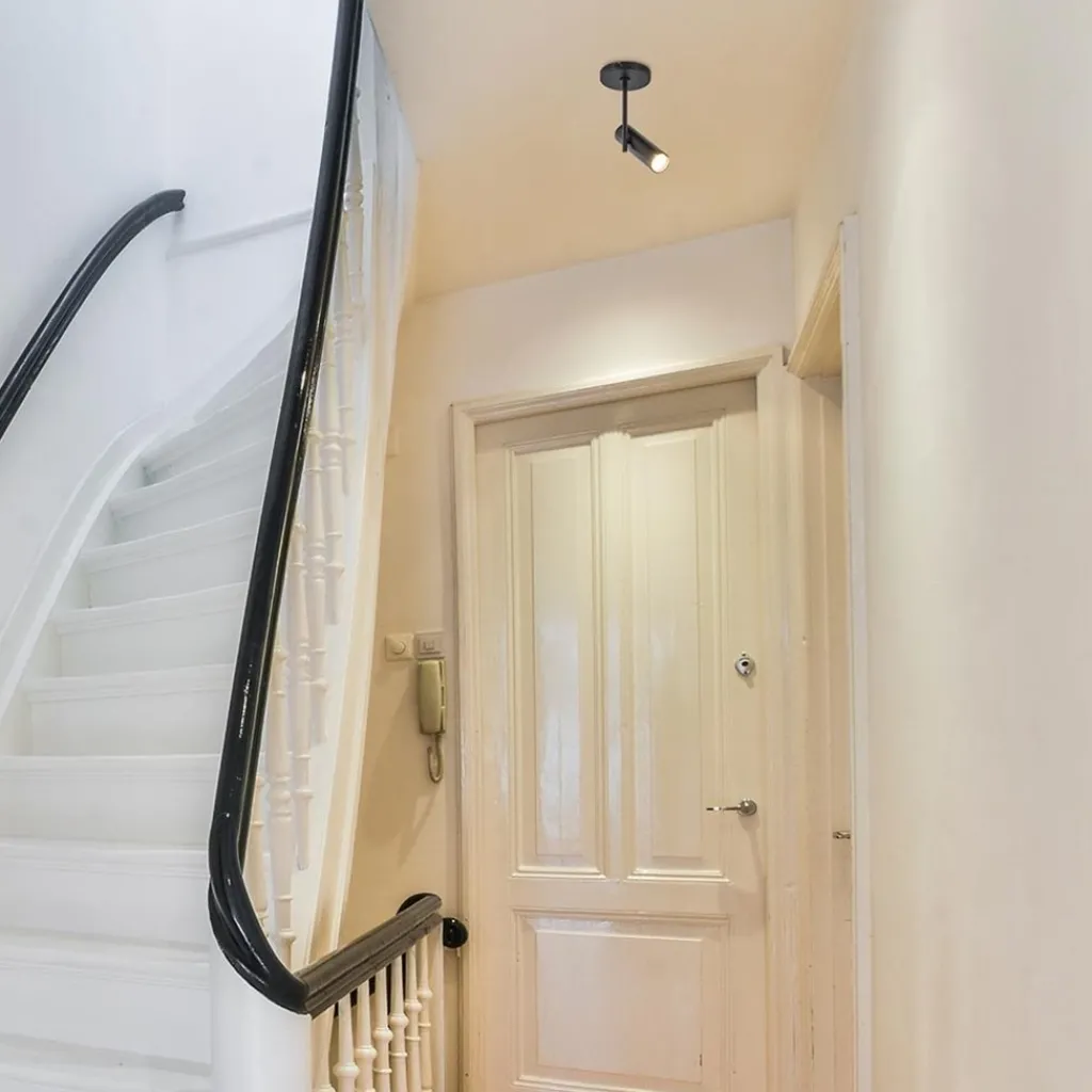 Een mooie opbouwspot met een hoog design gehalte. De 1-lichts plafondspot heeft een smal design wat zorgt voor een moderne look. De cilinder-vormige kap kan worden versteld door deze te draaien en/of te kantelen. Ideaal voor het uitlichten van een donkere hoek of object. De moderne opbouwspot is gemaakt van metaal en uitgevoerd in het mat zwart. De cilinder kan worden opengedraaid zodat de lichtbron gemakkelijk kan worden geplaatst.