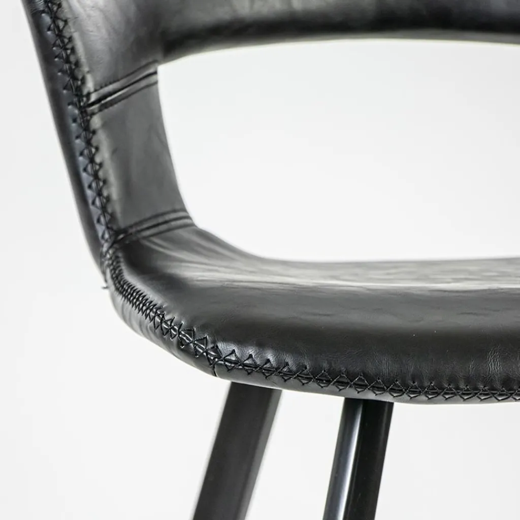 Deze retro barkruk maakt het interieur helemaal af. De kruk is voorzien van zwart imitatieleer en een metalen onderstel. De barstoel pas mooi bij een houten bartafel of een strak vormgegeven bar in de keuken. De barkruk heeft een comfortabele zitting die zowel in de zitting als de rug is voorzien van een kruisstik. Dit geeft de kruk net even wat meer karakter en zorgt tevens voor een mooie afwerking.