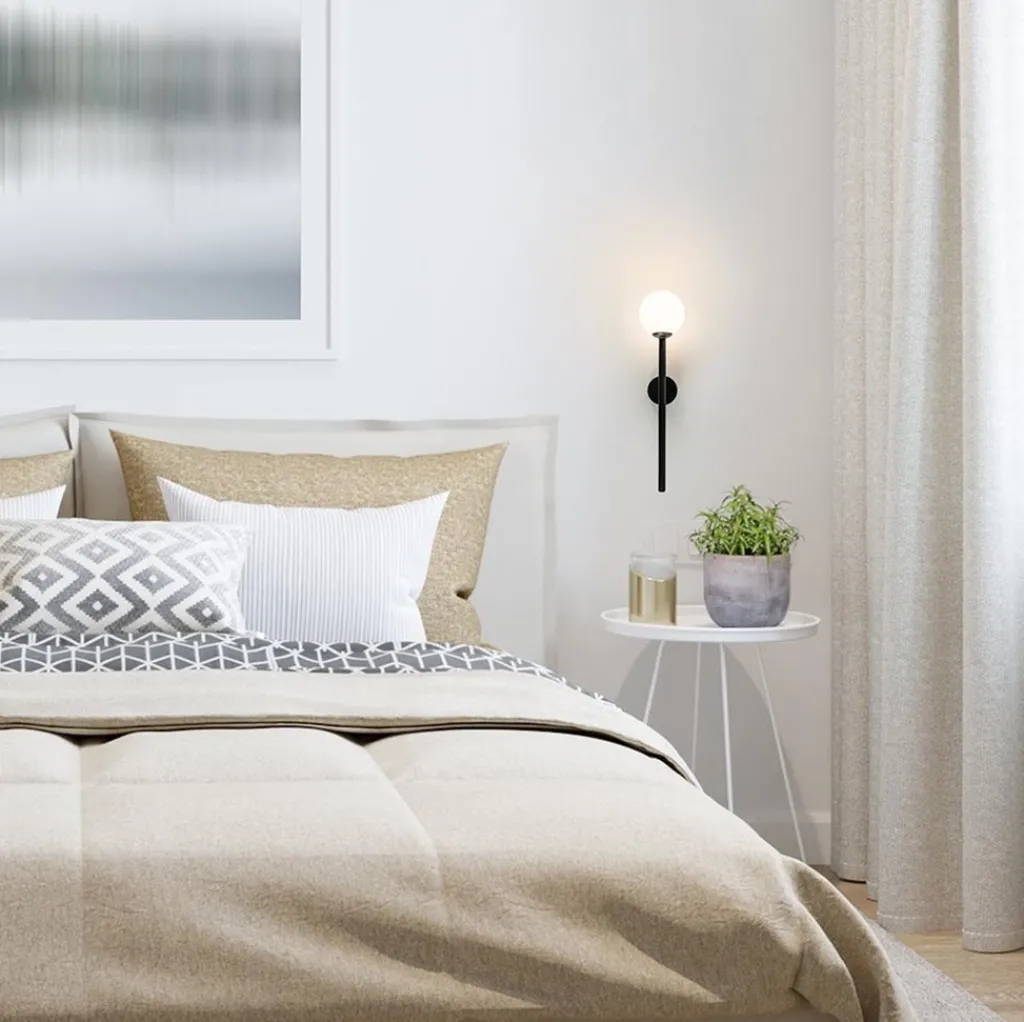 Straluma Retro wandlamp zwart met witte glazen bol> Wandlampen|Industriële Verlichting