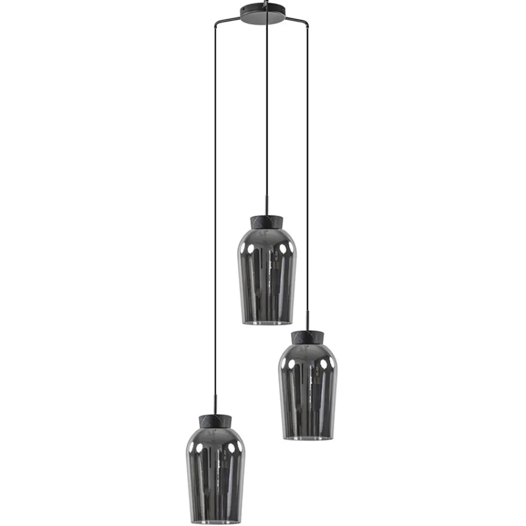 Straluma Ronde 3-lichts hanglamp zwart/marmer met smoke glas> Eettafellampen|Eetkamerverlichting