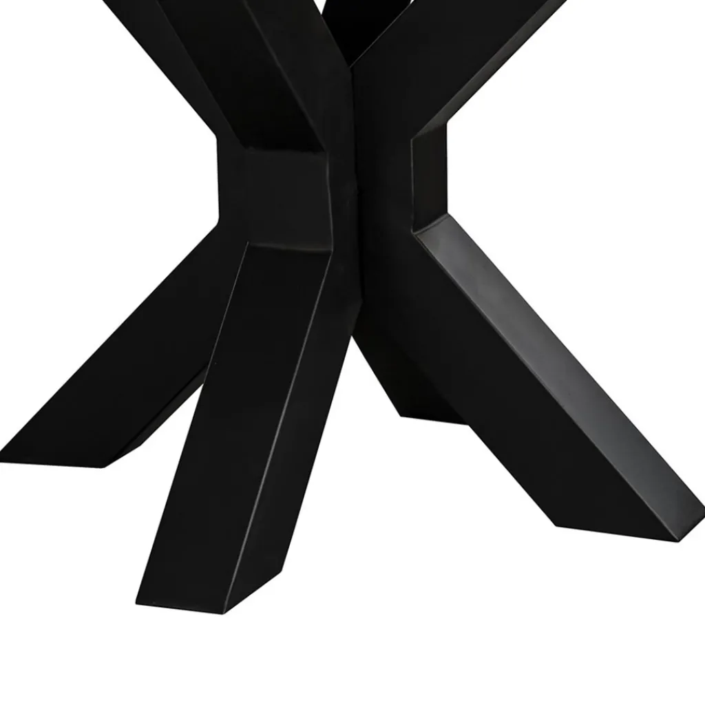 Deze stoere en robuuste eettafel is een mooie toevoeging aan een landelijk of industrieel interieur. De ronde tafel is voorzien van een mango houten blad met een doorsnede van 130 cm. De dikte van het blad is 5,5 cm wat de tafel een nog robuustere uitstraling geeft. Het ronde blad wordt ondersteund door een brede zwart metalen kruispoot die de stoere look helemaal af maakt.