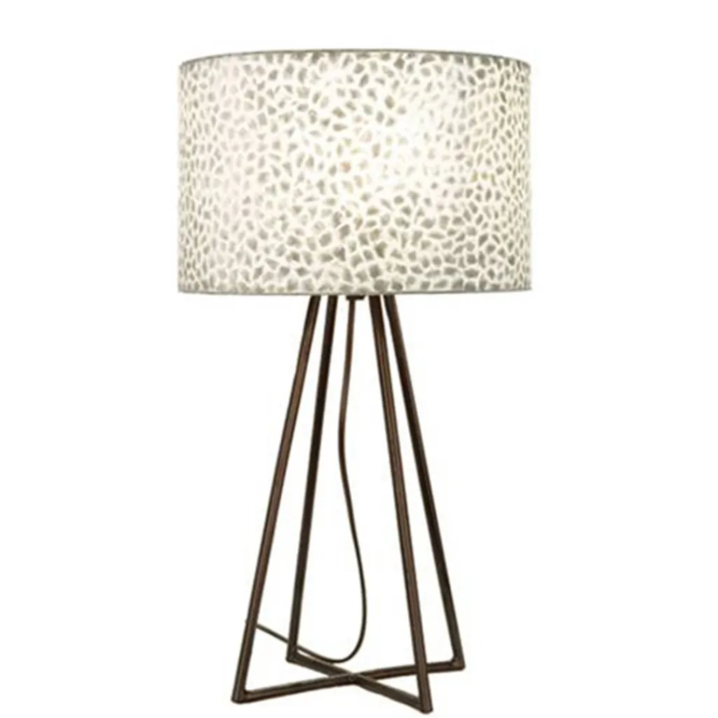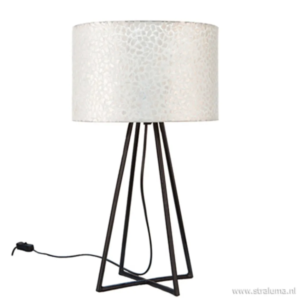 Een leuke moderne lamp met een decoratieve kap. De schelpen kap heeft een parelmoer witte kleur wat mooi past bij de zwarte metalen voet. Door de kleur en de capiz schelpen die in de kap verwerkt zitten, geeft de lamp een mooie sfeervolle verlichting. Deze tafellamp is zowel aan als uit een mooie decoratieve toevoeging aan het interieur die zorgt voor een warme gezellige sfeer.
