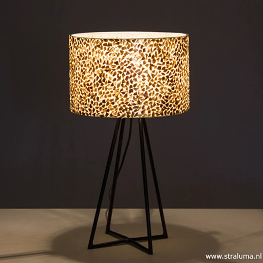Straluma Tafellamp metaal met schelpen kap> Schelpenlampen|Woonkamerlampen