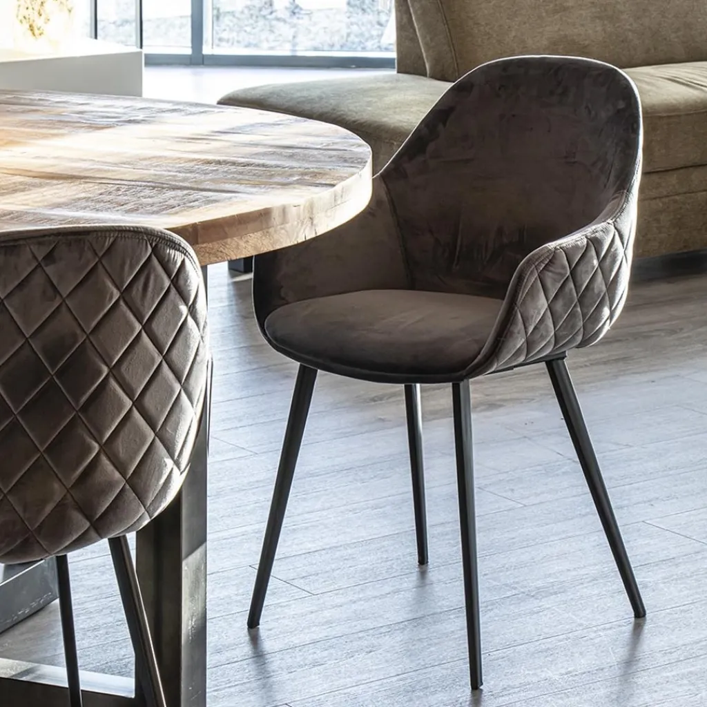 Straluma Trendy armstoel velvet grey met zwart metalen poot> Eetkamerstoelen