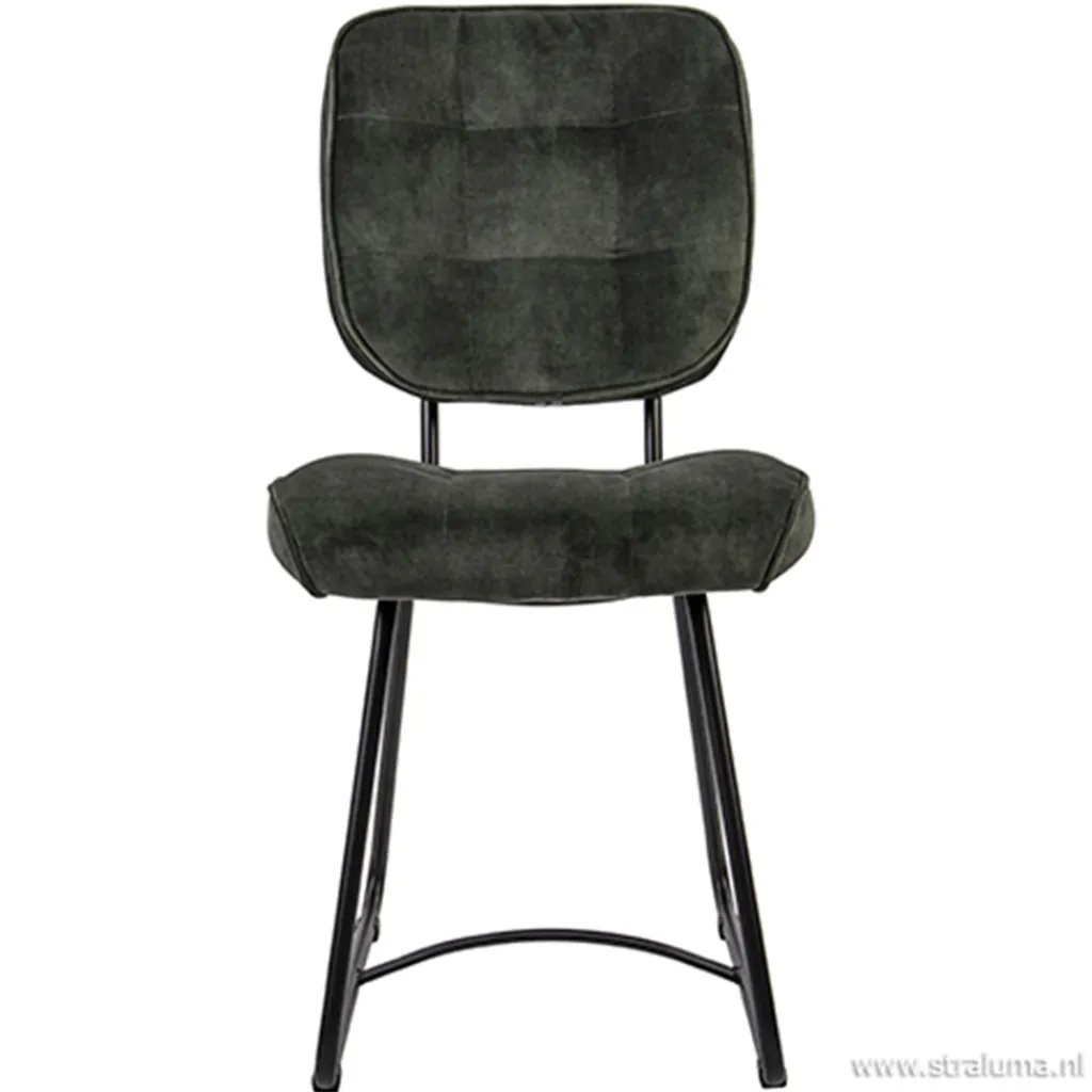 Dit trendy stoeltje past helemaal binnen de trends van nu. De strakke lijnen van de mat zwarte poten passen mooi bij een landelijk of modern interieur en de velours stoffen zitting en rugleuning geven de eetkamerstoel een luxe uitstraling. Op de rug is de stoel voorzien van een handvat zodat u de stoel gemakkelijk onder de tafel vandaan kunt schuiven. De velourse stoel heeft een hoog zitcomfort zodat tafelen en natafelen een waar genot is.