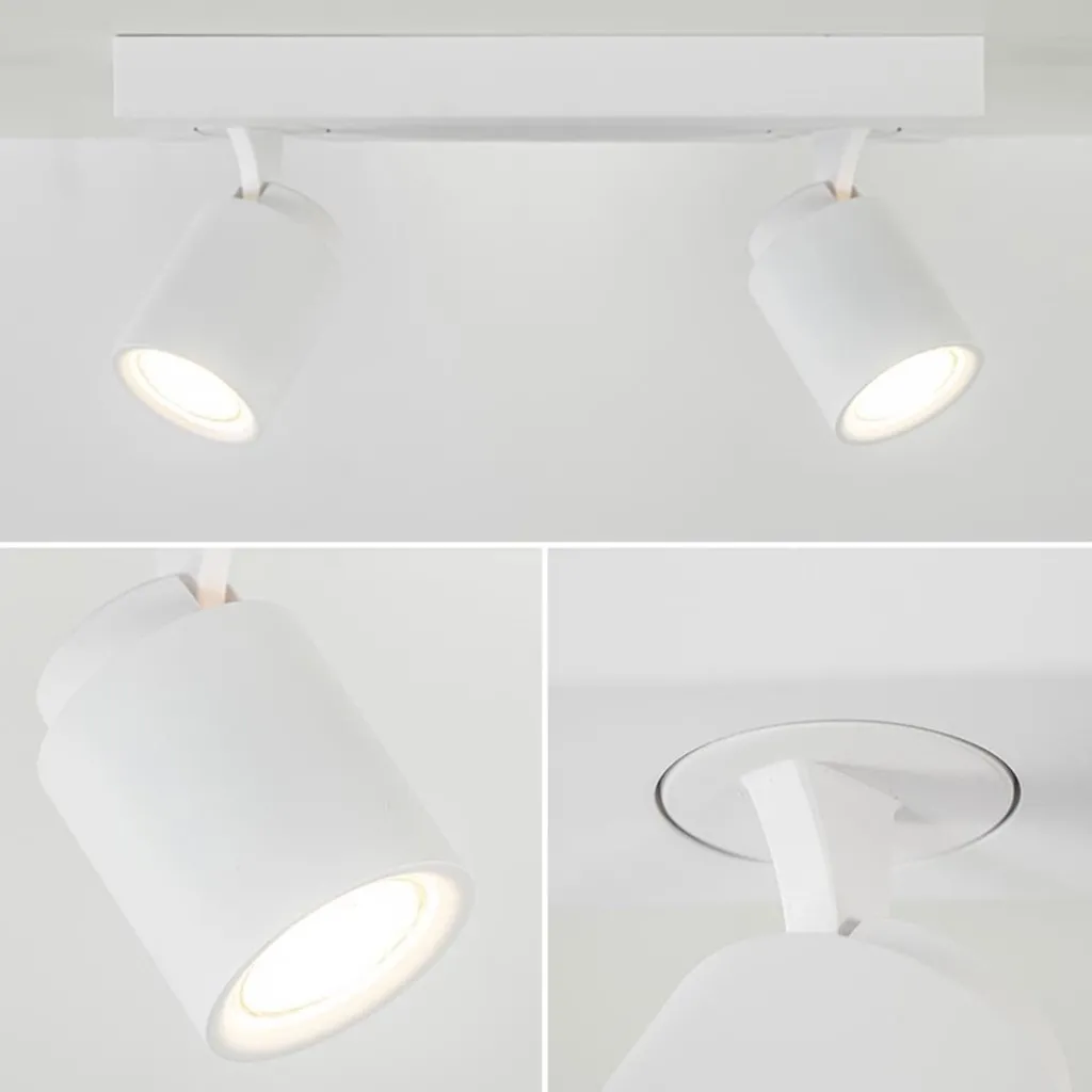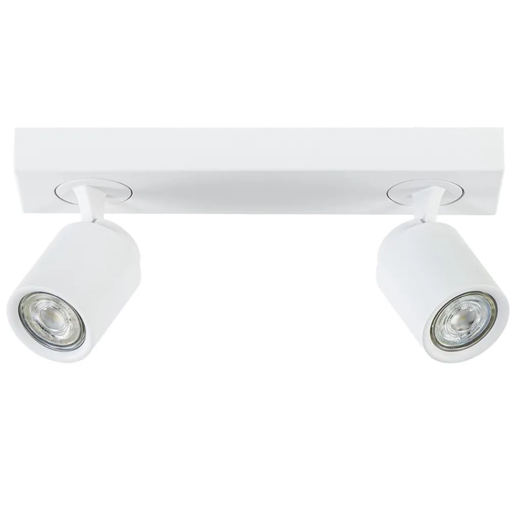 Ideaal voor in de hal of slaapkamer. Deze opbouwspot is gemakkelijk toe te passen in diverse woonstijlen. De 2-lichts plafondlamp is gemaakt van metaal en uitgevoerd in het wit. De twee spotjes zijn gemakkelijk te verstellen door deze te draaien of te kantelen. Zo kunt u gemakkelijk de juiste richting bepalen en zo een donkere hoek of object uitlichten. De witte plafondspot wordt geleverd zonder lichtbron. De lichtbron kan worden geplaatst door de volledige kap van de spot los te draaien.